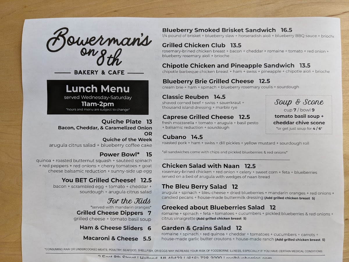 Welcome to Bowerman's on 8th, a charming cafe in downtown Holland, MI, uniquely positioned at 2 E 8th St. This delightful eatery serves an array of dishes that cater to diverse palates, from hearty sandwiches and vibrant salads to sweet desserts. Patrons rave about their remarkable blueberry pastries, featuring tempting options like the blueberry handpie and blueberry smoothie.